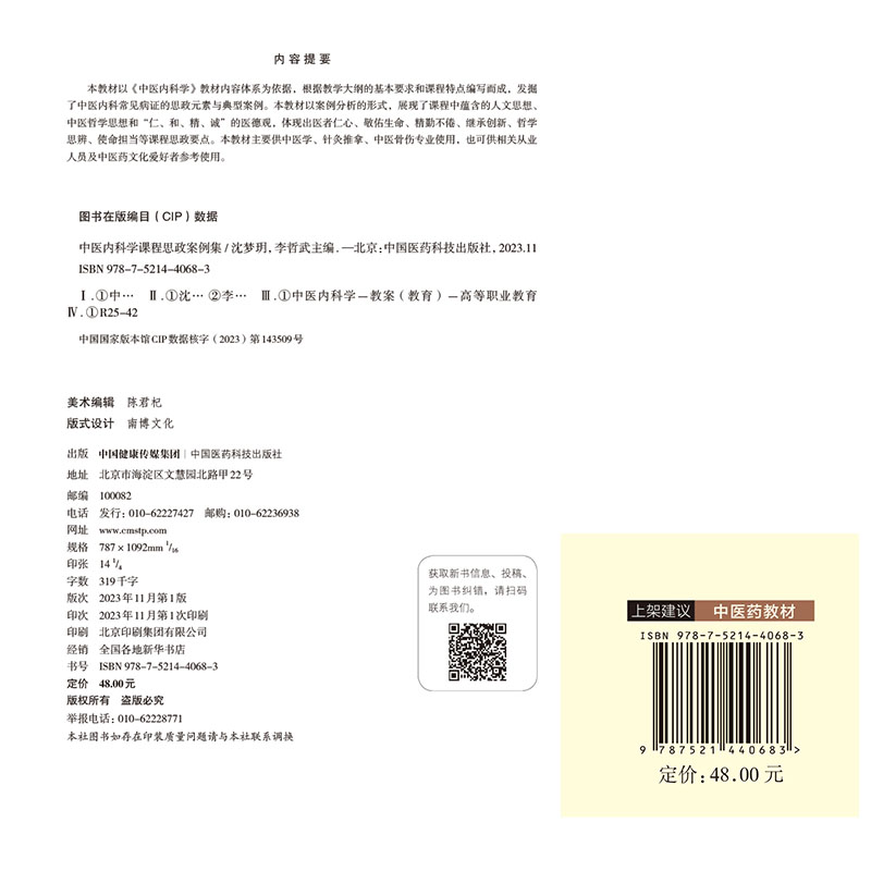 中医内科学课程思政案例集 社 沈梦玥 中国医药科技出版 9787521440683 李哲武 现货正版