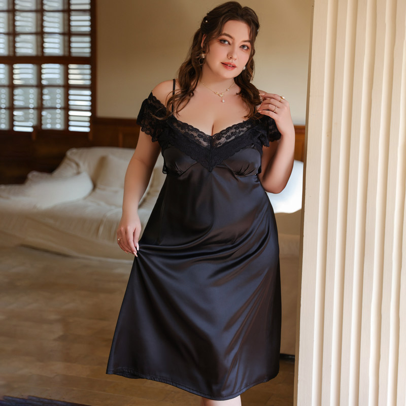 2025新款 性感冰丝睡袍纯欲风高级感蕾丝吊带睡衣 睡裙女春秋夏薄款