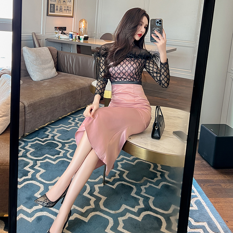 气质针织裙子短裙 黑色连衣裙女下摆开叉时尚 DPLAY2025年秋季 新款