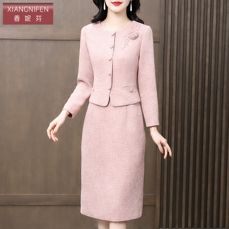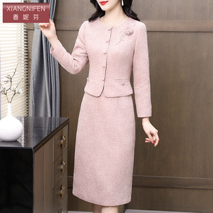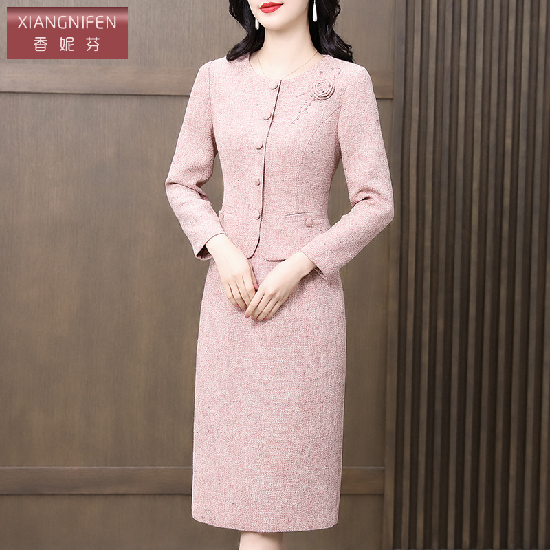 加厚减龄中长裙 春秋显瘦修身 香妮芬气质妈妈长袖 连衣裙女2025新款