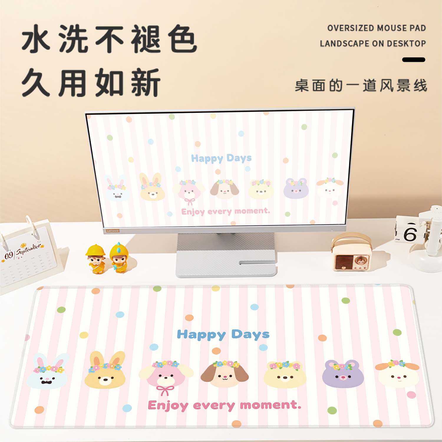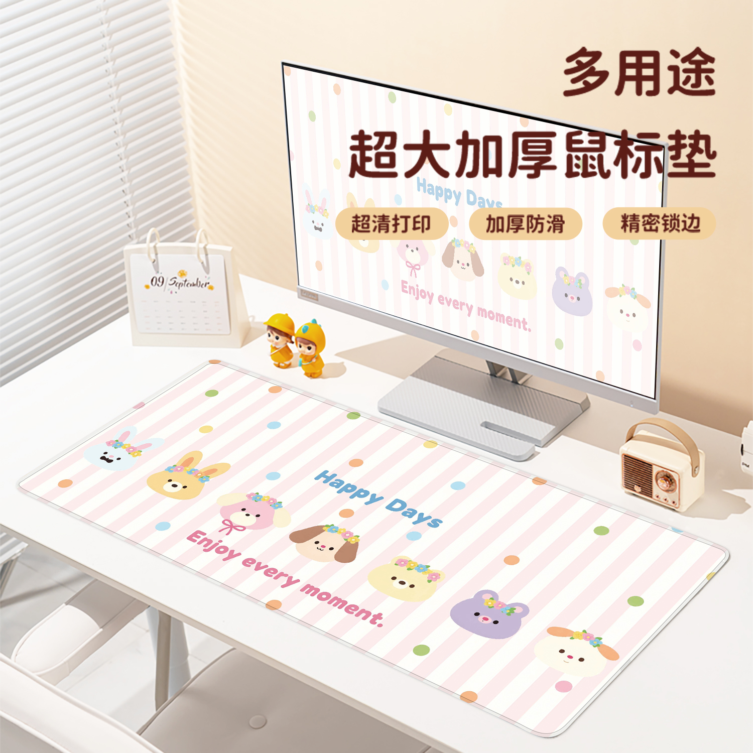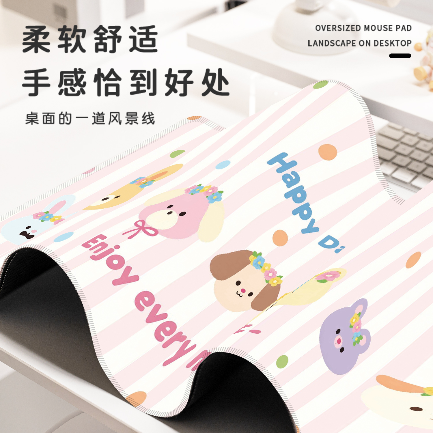 鼠标垫超大卡通猫狗办公桌面垫可爱工位桌垫高颜值电脑键盘垫子