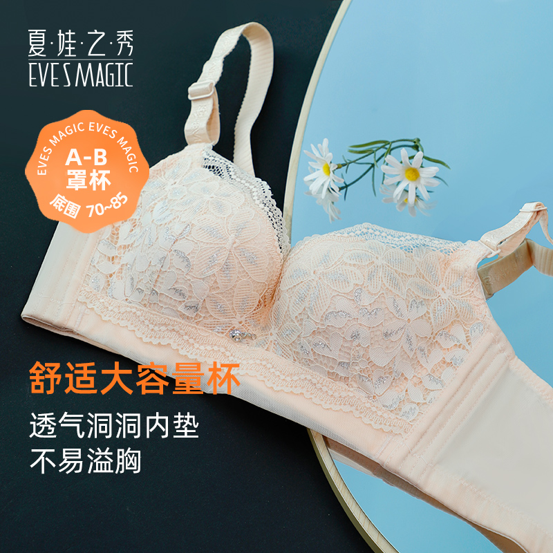 好奇蜜斯大胸显小胸内衣女性感夏薄防下垂法式 纯欲蕾丝文胸罩套装