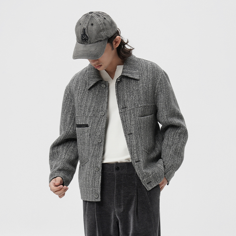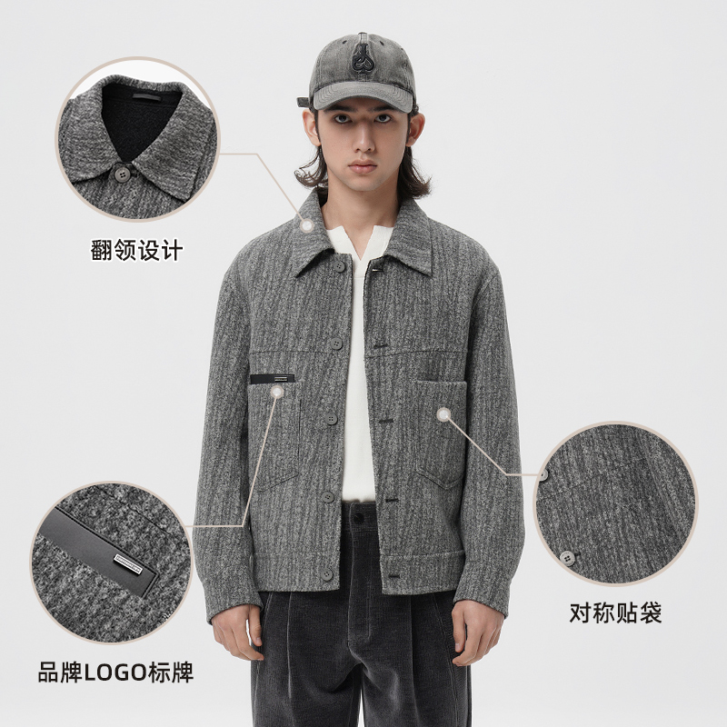 灰色翻领绵羊毛男士 新品 夹克茄克休闲外套WJK3306 春季 JDV商场同款