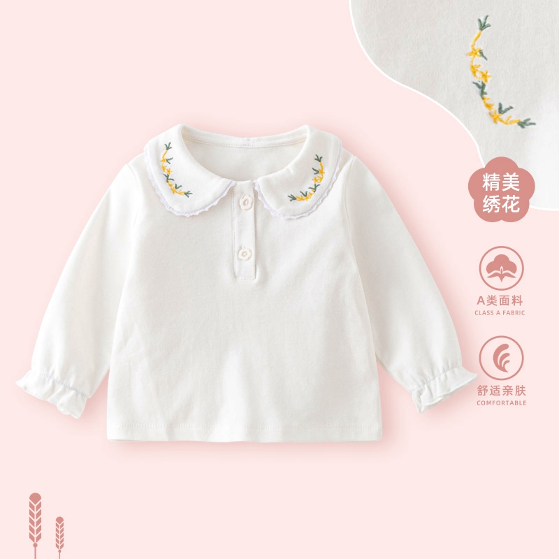 衣服秋季 女宝宝白色衬衫 幼儿衬衣女童洋气上衣 秋装 婴儿T恤打底衫