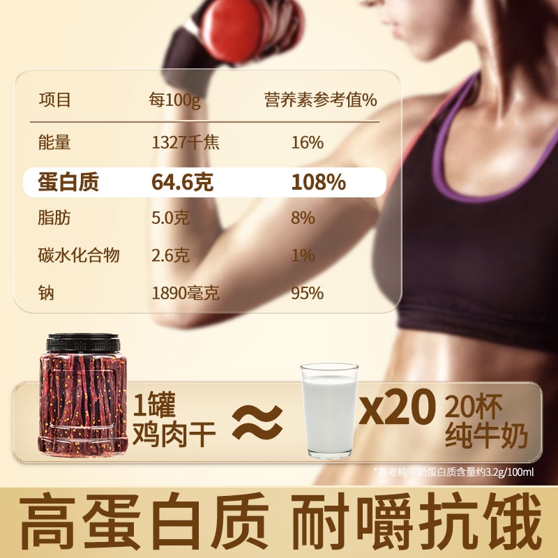 风干鸡肉干鸡胸肉条减低耐嚼卡脂休闲晚上解饿馋食品零食即食健身