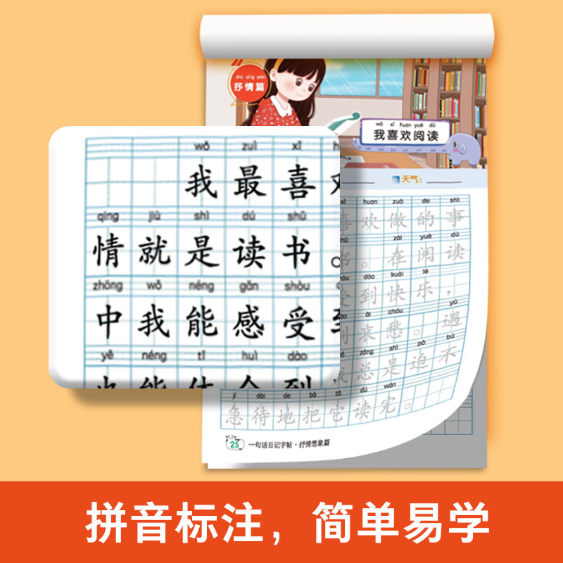 全4册 轻松练好字快乐写日记精选日常生活写人叙事篇写景状物篇抒情想象篇及读后感篇学习不同主题有利于素材积累 一句话日记字帖