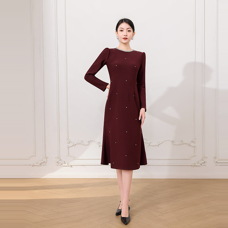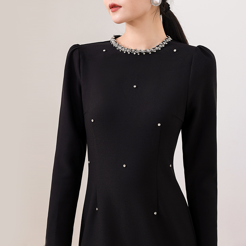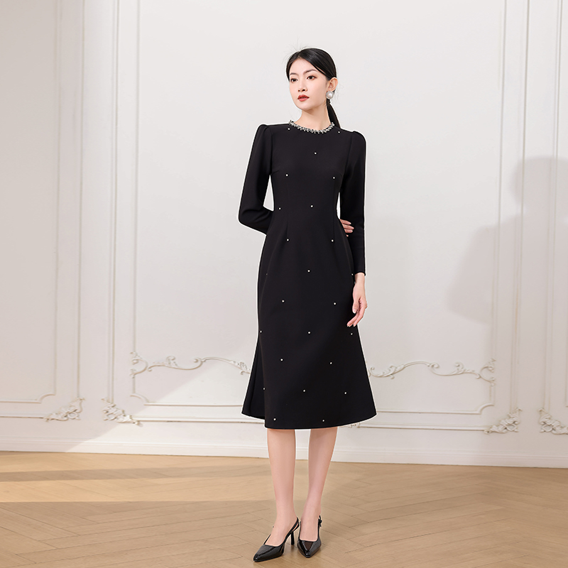 宽松领口珠片花朵裙子 新款 乐町韩系千金感连衣裙女装 2025年秋季