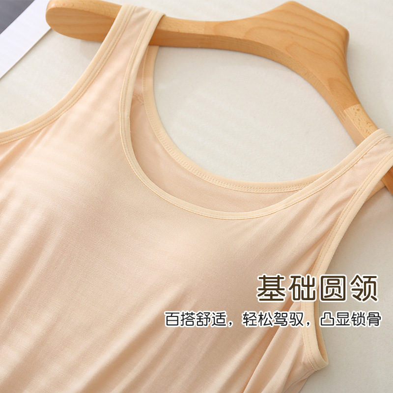 纯色圆领打底防走光 内搭百搭一体式 带胸垫吊带背心女大码 胖mm修身