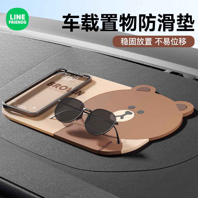 布朗熊车载防滑垫卡通垫子车内汽车摆件创意中控台手机固定垫防水
