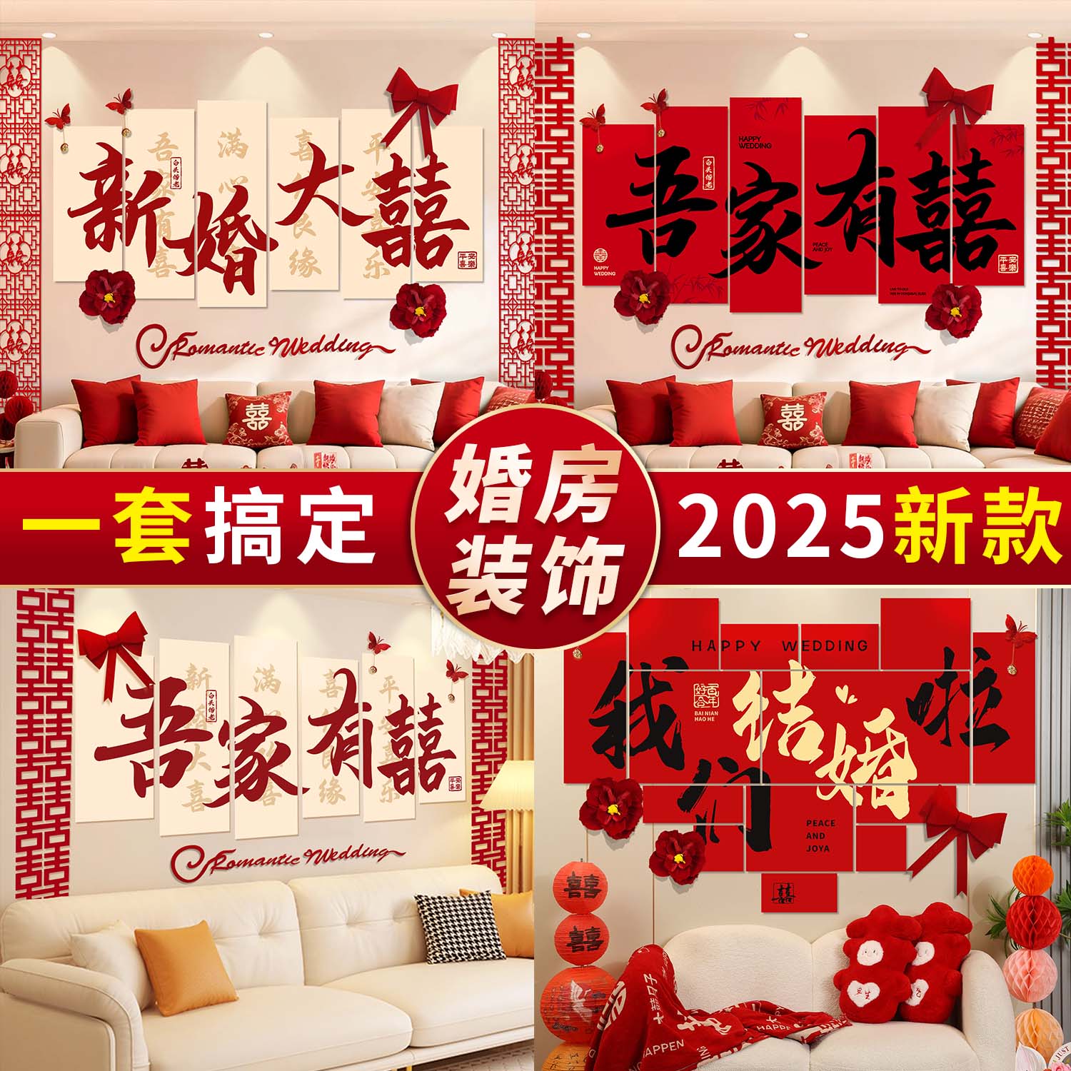婚房布置套装 饰喜字墙贴婚庆用品 男方女方新房卧室客厅背景墙装