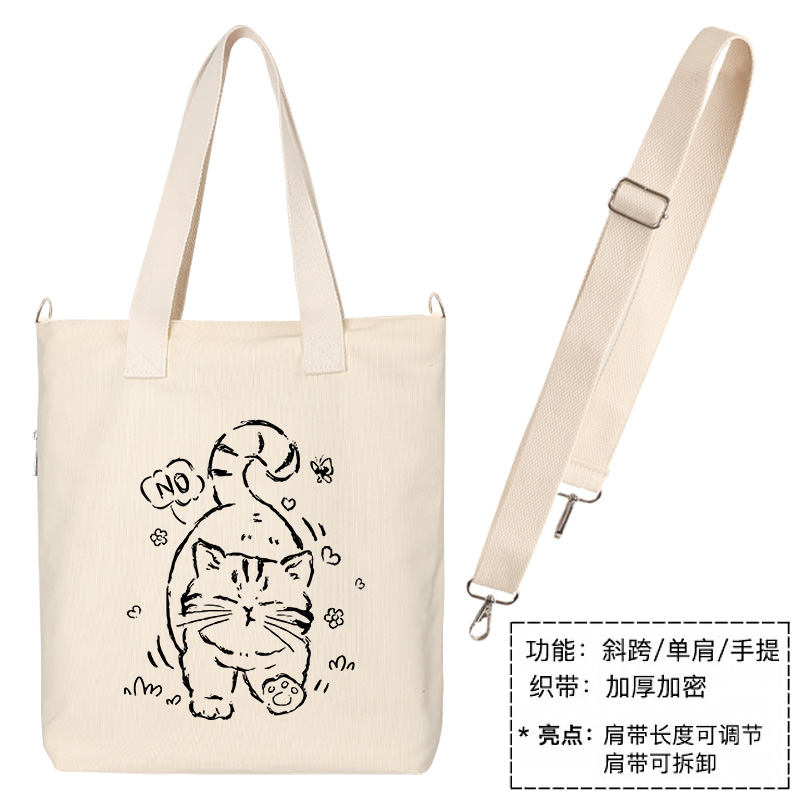 秀洛no 小虎猫单肩斜挎手提包托特包女休闲帆布背包大容量手提袋