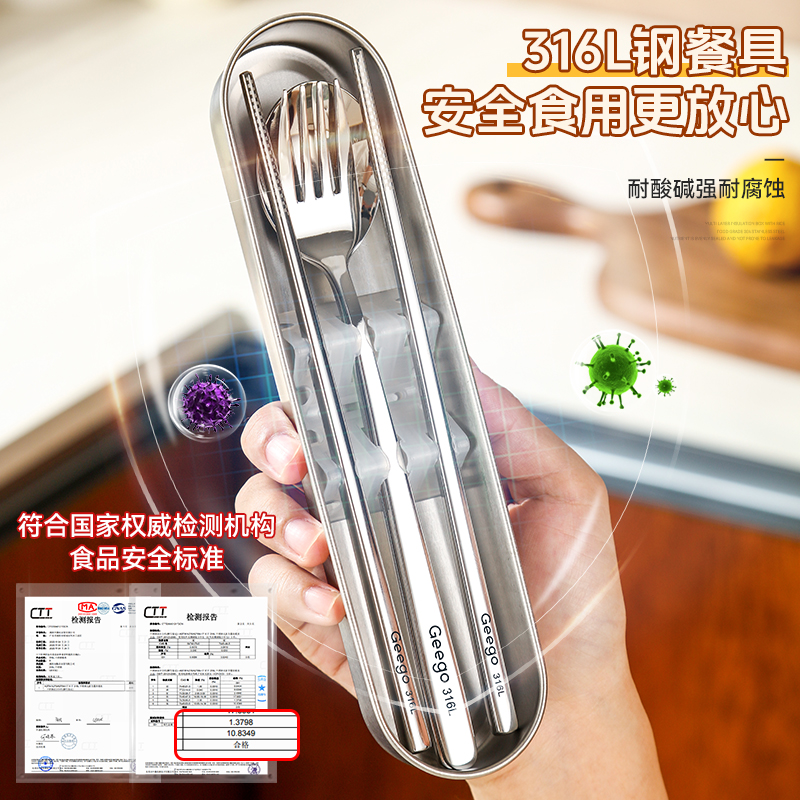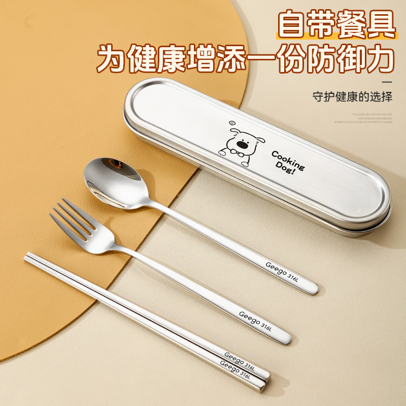 筷子勺子套装 316不锈钢餐具一人用便携收纳盒学生上班三件套旅行