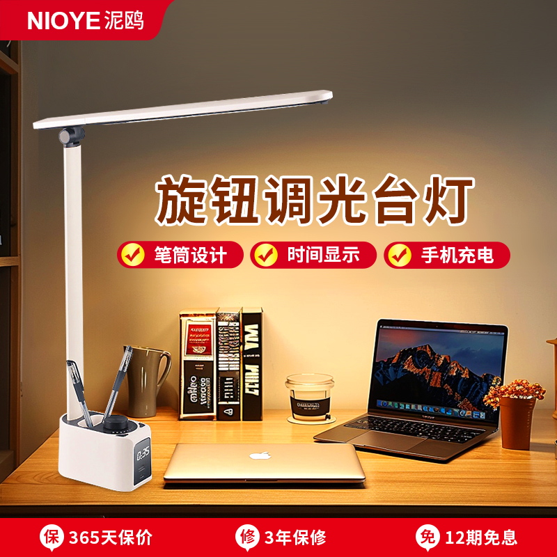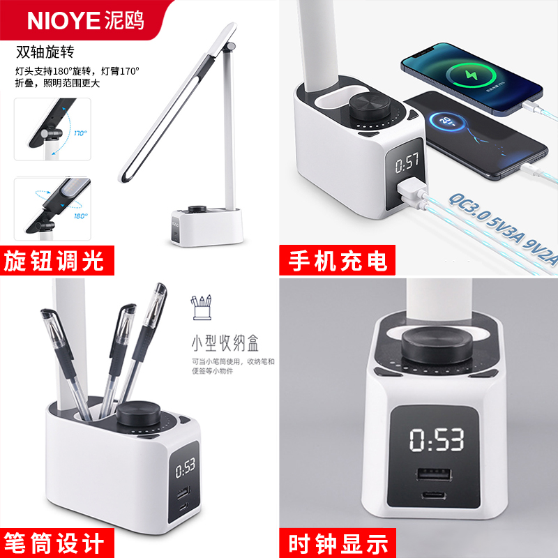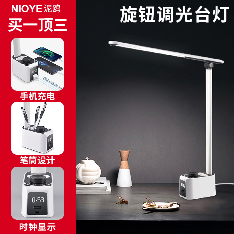 多功能台灯工作灯护眼带时钟笔筒旋钮usb手机充电办公桌专用台灯