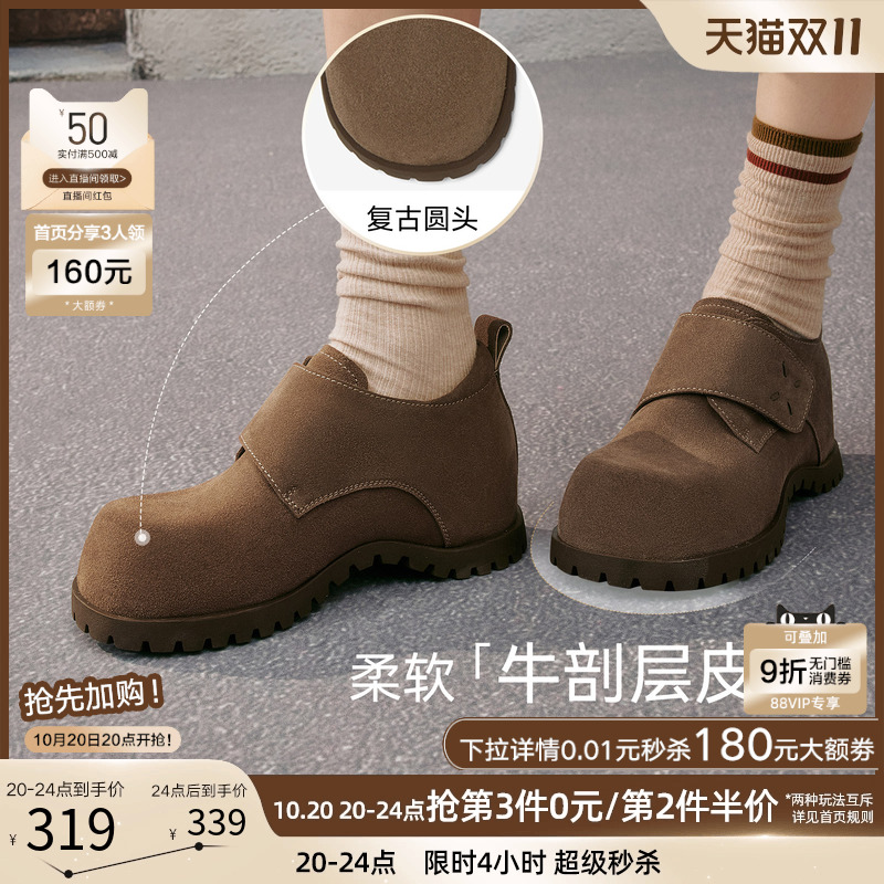 真皮魔术贴勃肯鞋 商场新款 百思图25秋季 休闲女单鞋 巧克力慕斯