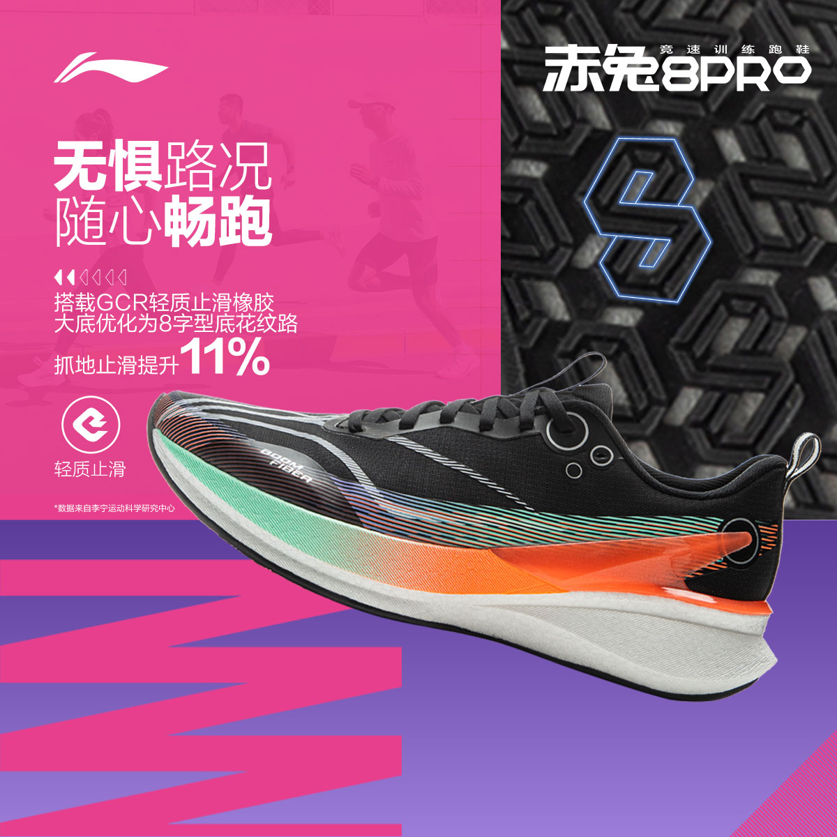 减震透气中考轻便竞速训练专业运动鞋 男款 跑步鞋 李宁赤兔8PRO