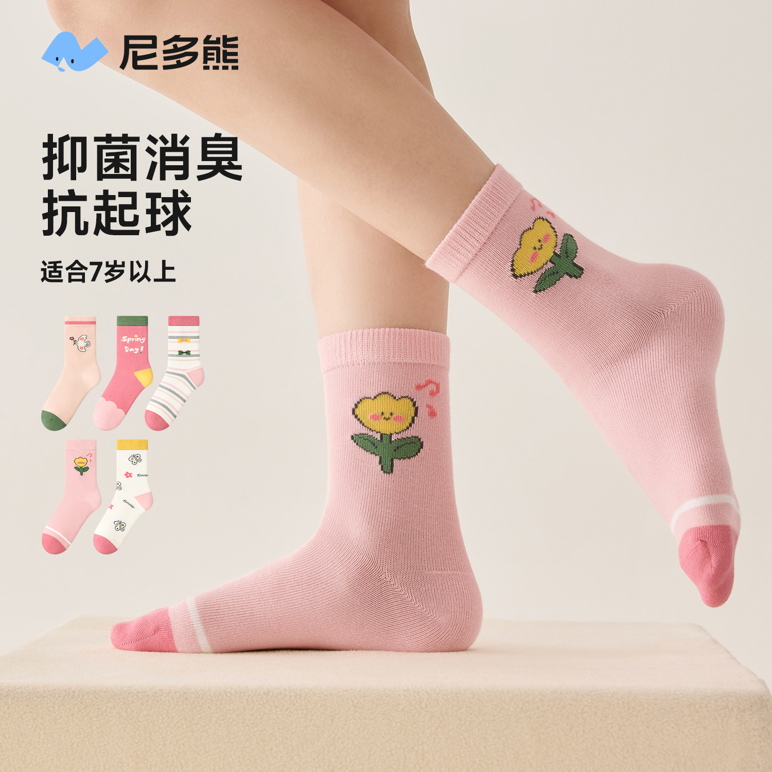 尼多熊2025儿童袜子春秋棉袜中大童a类女童抗菌袜女孩秋冬防臭袜