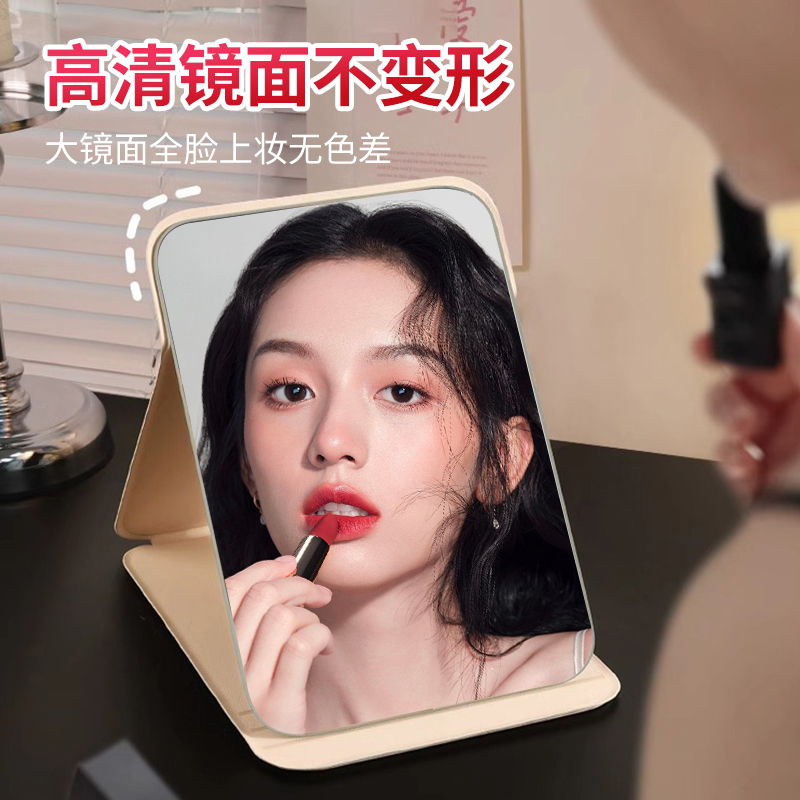 桌面小镜子化妆镜女随身便携式 专用折叠家用高清 可立学生宿舍男士