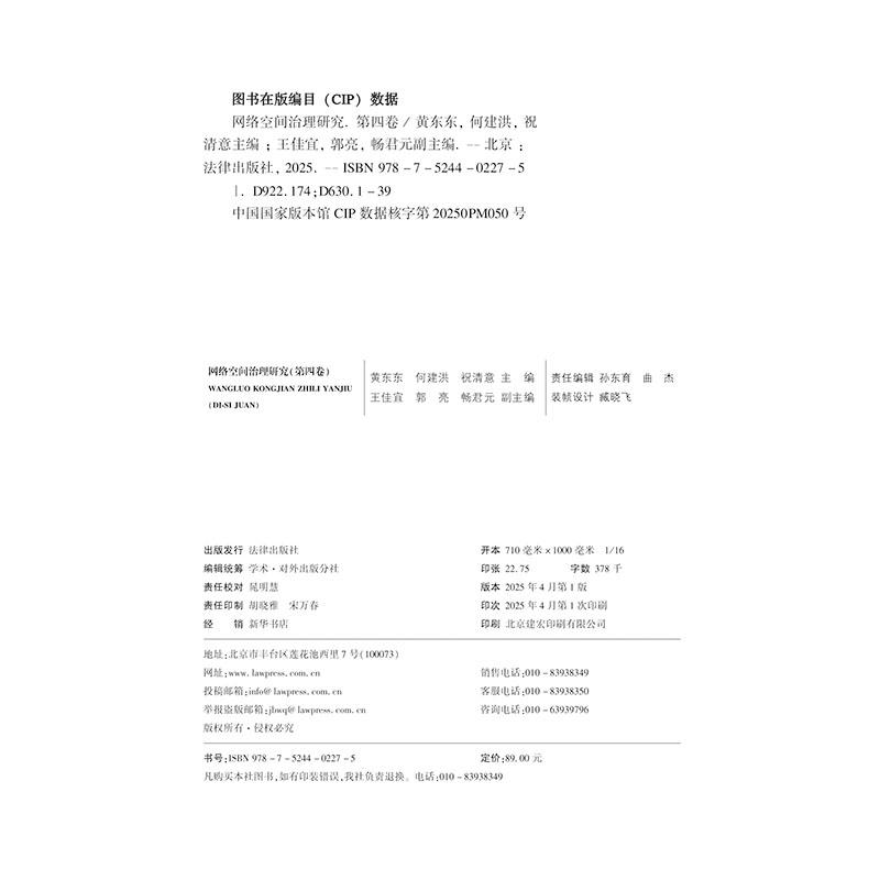 第四卷 黄东东 何建洪 正版 法律出版 网络空间治理研究 祝清意 社9787524402275 2025新书