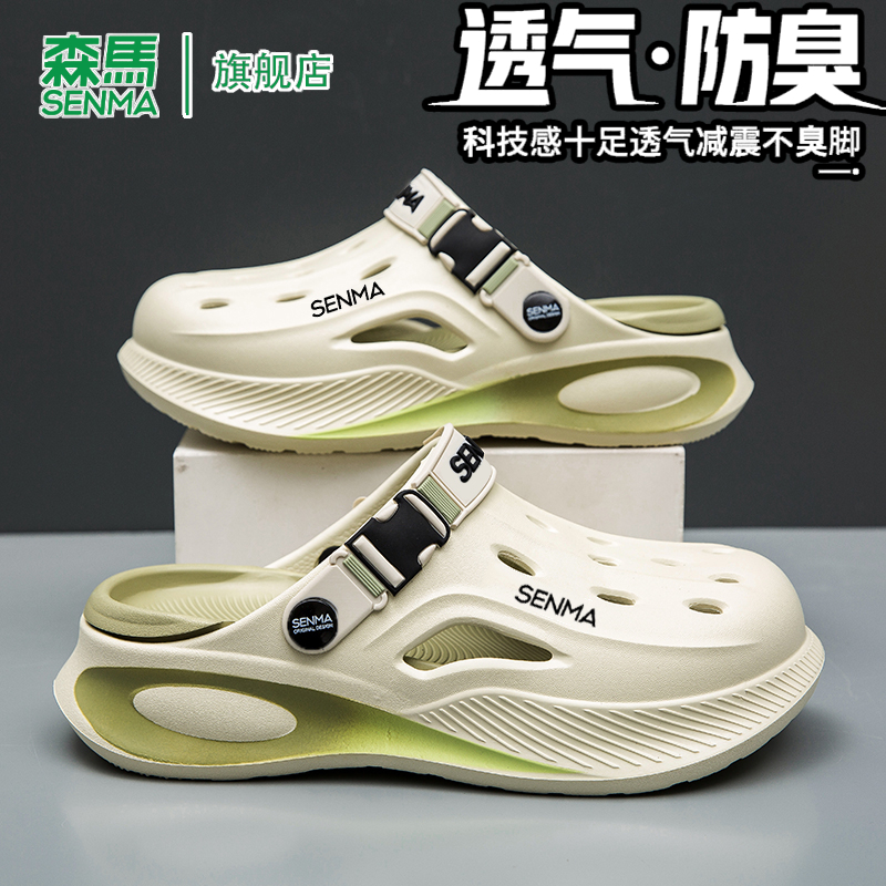 新款 休闲沙滩凉鞋 洞洞鞋 软底防臭可开车包头拖鞋 男士 森马2025夏季