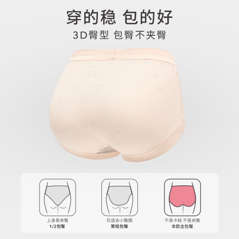 女士纯棉中腰女生内裤 不夹臀抗菌内裤 三角裤 新款 短裤 全棉时代内裤