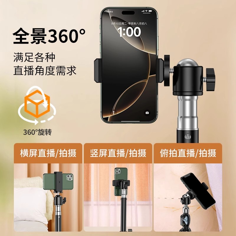 手机支架直播落地三脚架自拍杆便携2025新款 加粗加厚支撑架子 补光灯拍照神器多功能拍视频全套设备户外落地式
