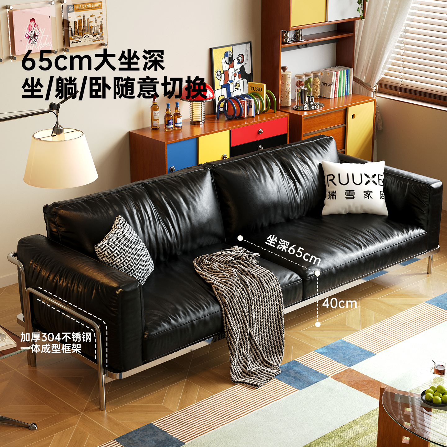 沙发小户型双三人出租办公室休息区皮艺客厅沙发椅双人实木收纳