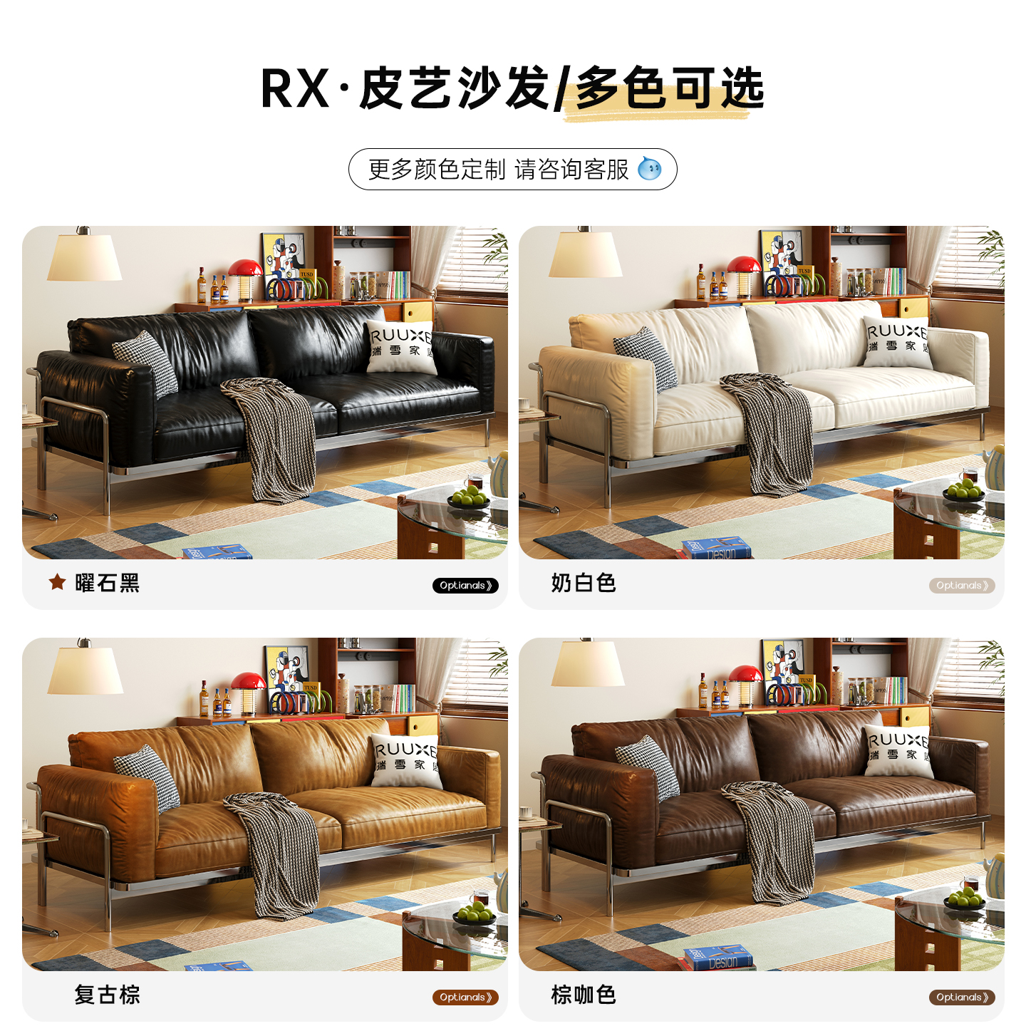 复古单人沙发皮艺时尚 门店铺双人沙发 小户型卧室美甲酒店民宿服装