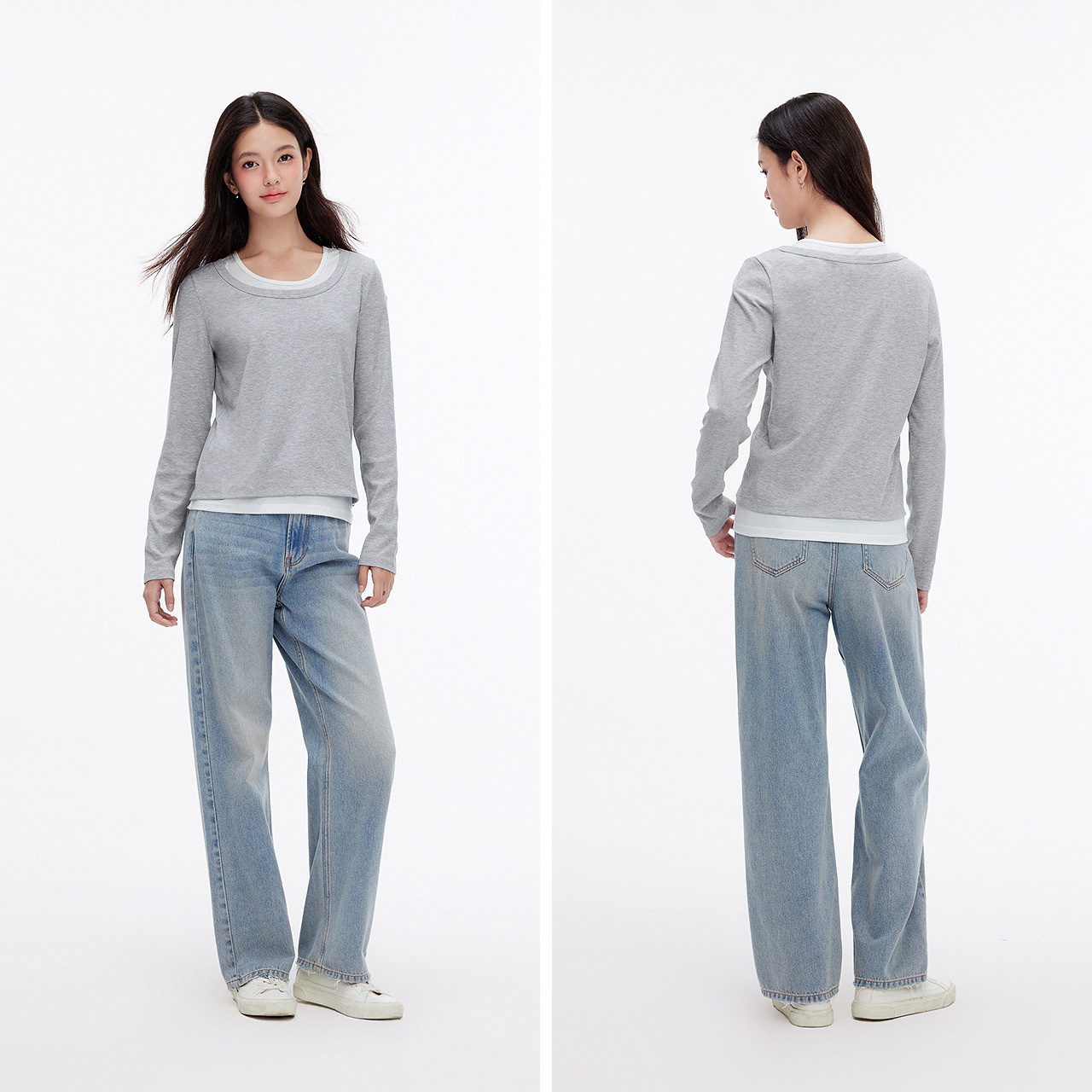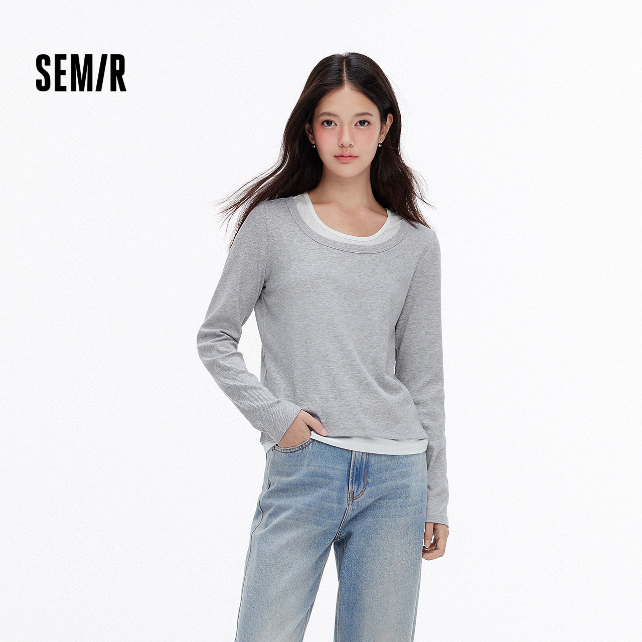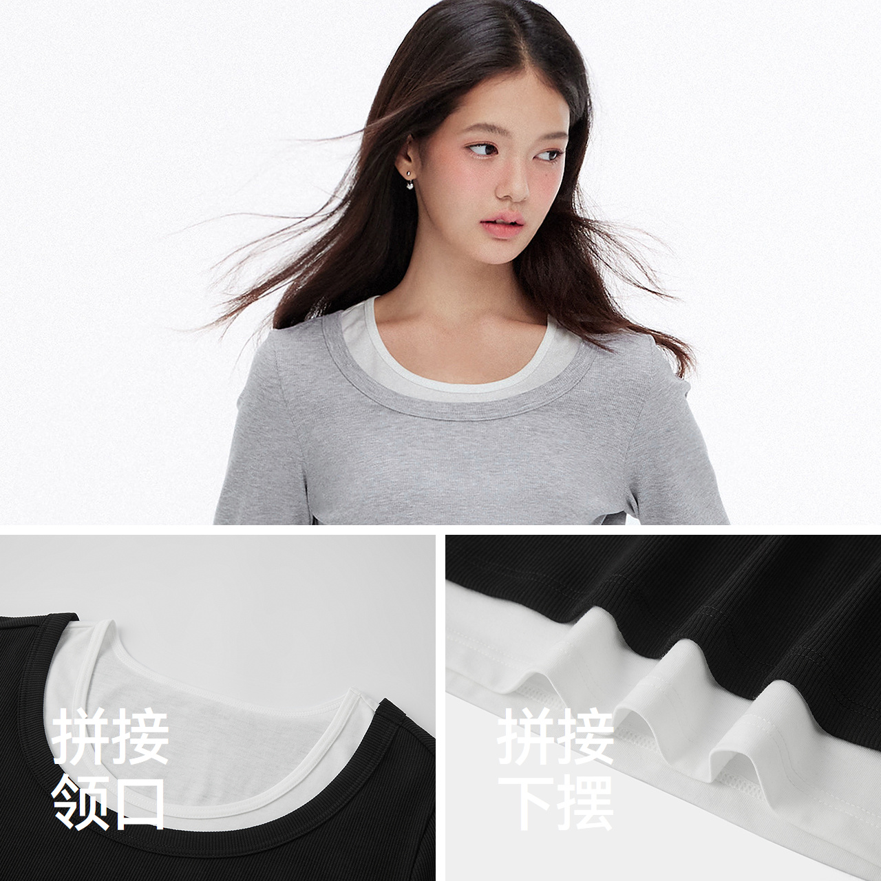 时尚 森马打底衫 秋装 显瘦内搭可外穿拼接假两件上衣长袖 百搭 女修身