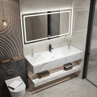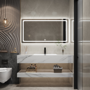 沐枫优家浴室柜组合卫生间洗手盆洗脸盆柜双层岩板洗漱台智能卫浴