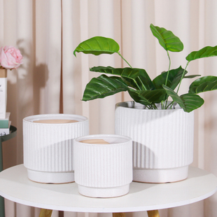 花盆陶瓷白色轻奢简约特价 清仓大号带托盘家用绿萝吊兰多肉小花盆