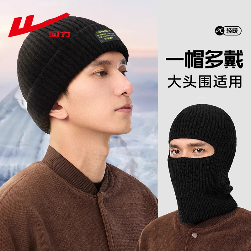 回力秋冬潮流帽子男士 护耳头套防风面罩护脸护脖保暖针织毛线冷帽
