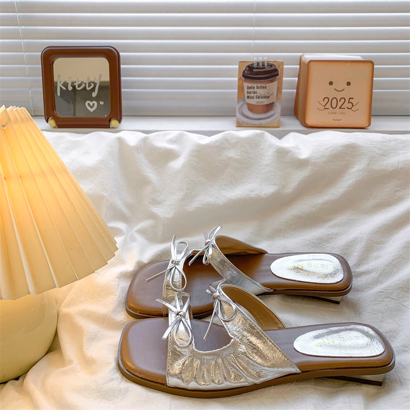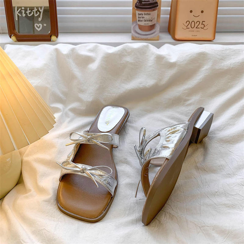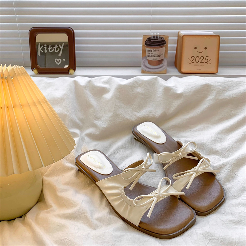 蝴蝶结外穿时尚 女绝美夏2025新款 配裙子低跟凉拖露趾橡胶 拖鞋 法式