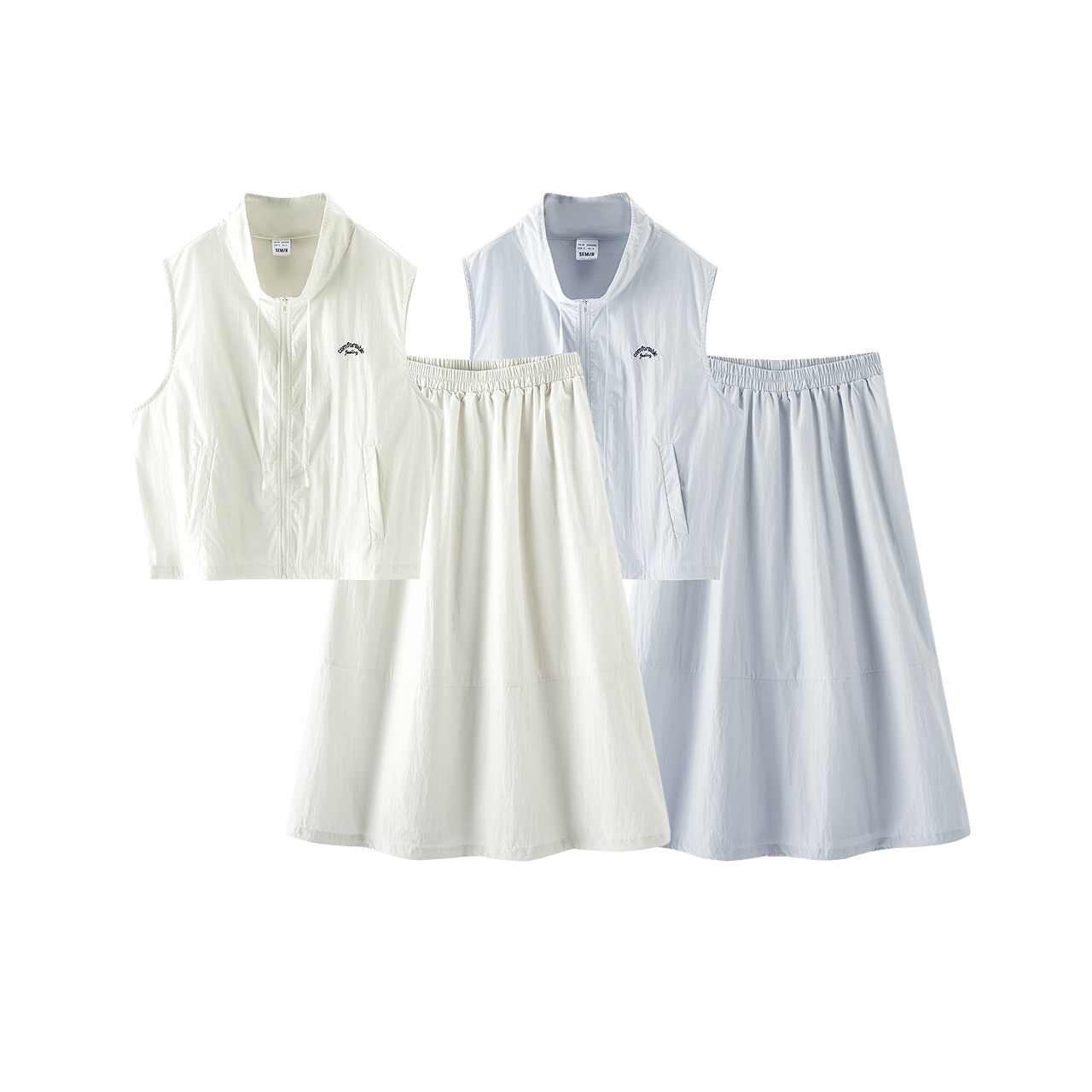 马甲2025新款 女高腰长裙立领抽绳短款 森马套装 秋两件套 商场同款
