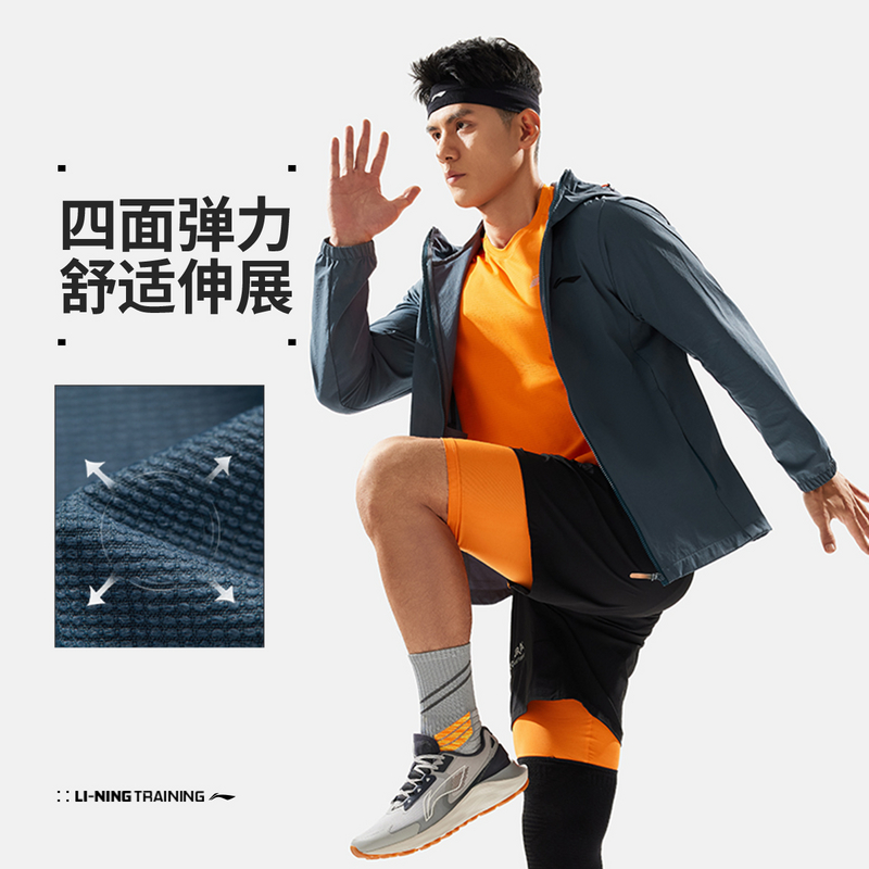 李宁风衣男秋跑训系列时尚 B品 舒适透气常规连帽运动风衣AFDU151