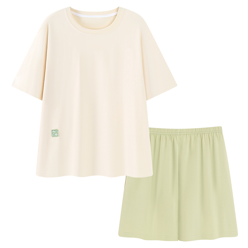 宽松外穿家居服套装 猫人冰丝睡衣女带胸垫夏季 薄款 短袖 2025年新款