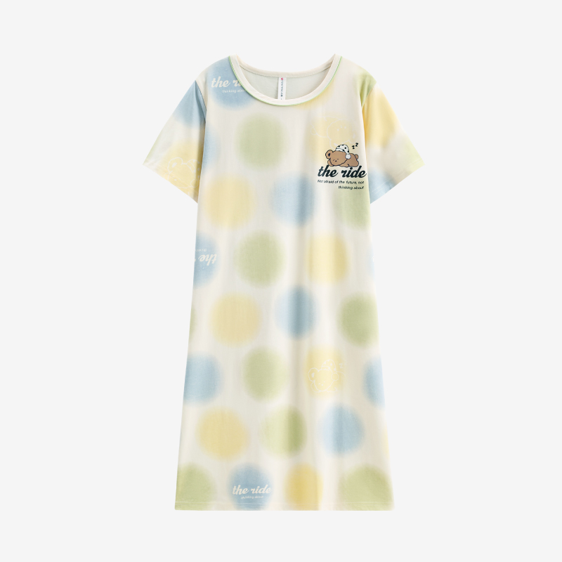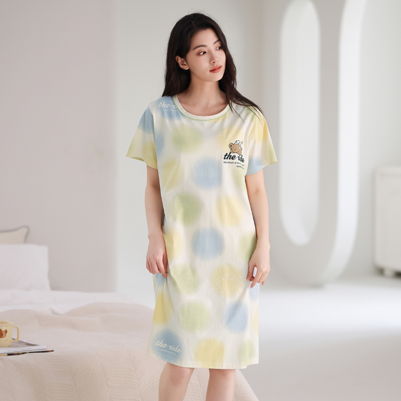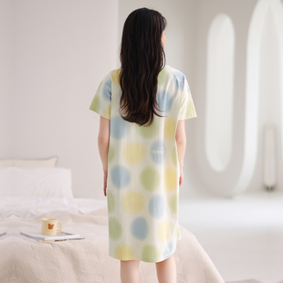 连衣裙休闲卡通睡衣女士家居服2025新款 中长款 纯棉短袖 睡裙女夏季