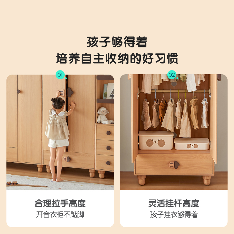 林氏家居实木脚儿童衣柜男孩卧室家用24新款 衣橱成品政府补贴