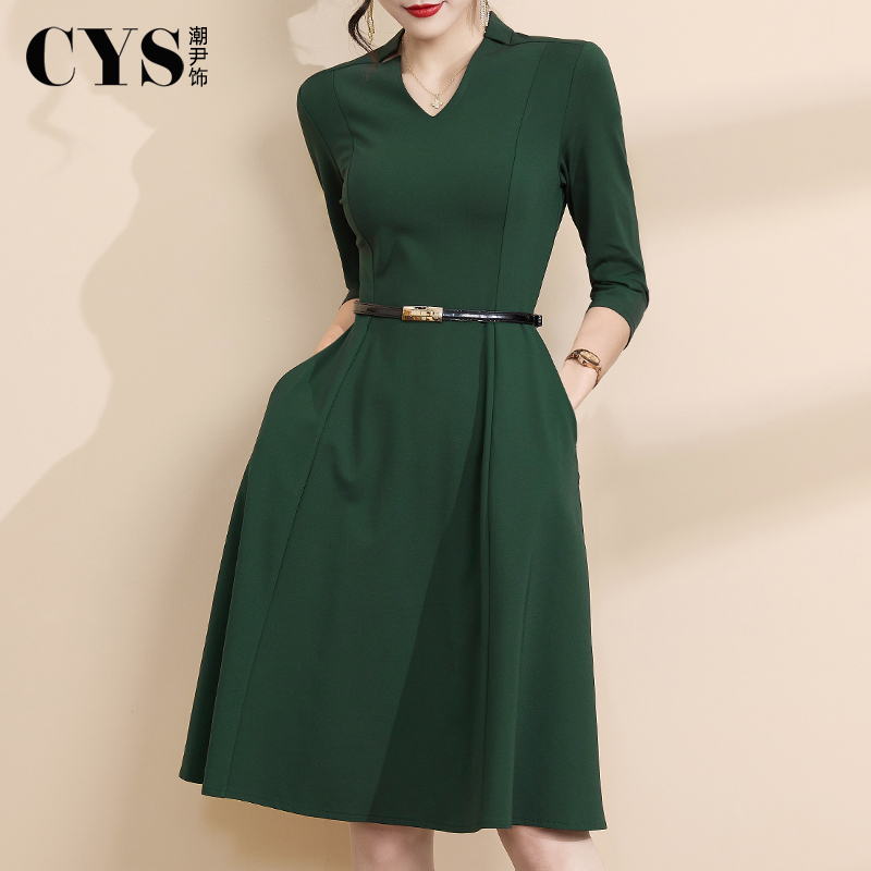 新款 连衣裙女秋季 高级感学院风a字花苞裙 撞色假两件衬衫 气质法式