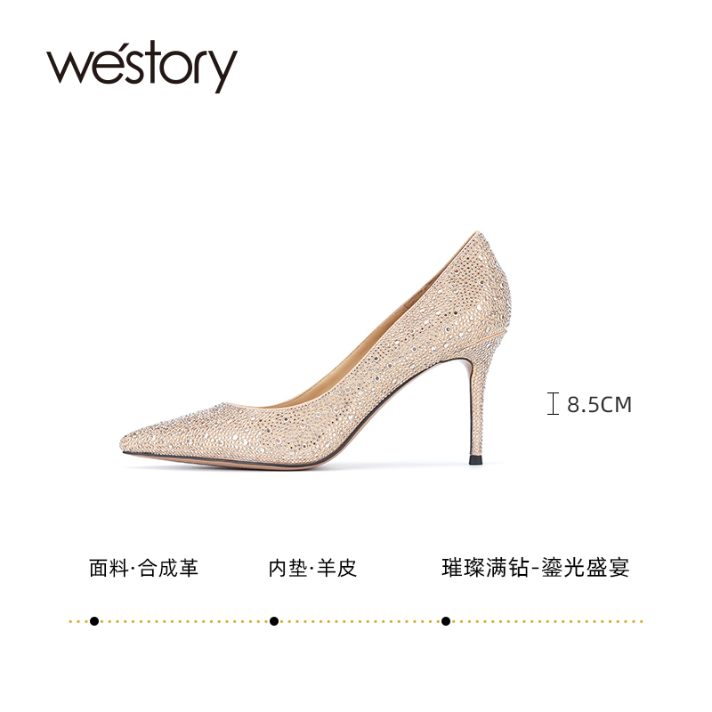 56891 水晶婚鞋 westory2025秋冬新款 立体小圆尖头水钻细跟高跟鞋