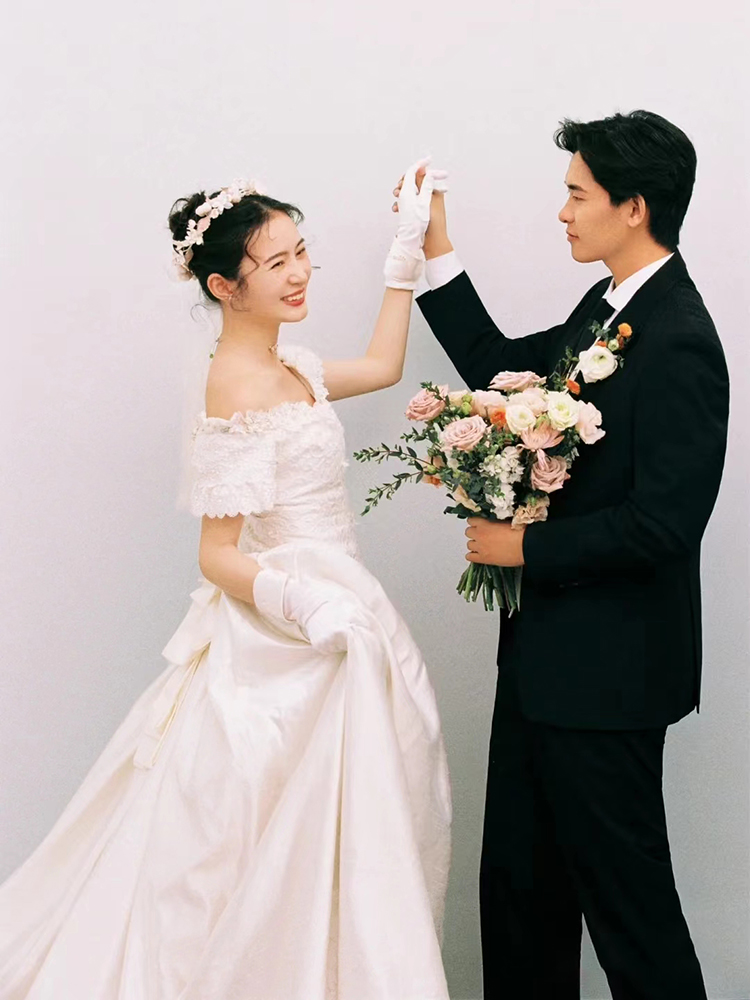 法式 小个子礼服女 复古轻婚纱旅拍缎面简约齐地婚纱新娘2024新款