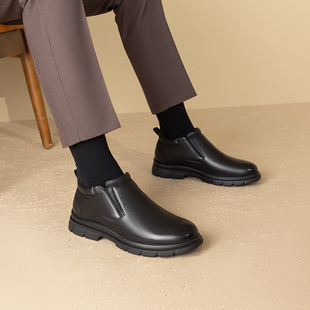 真皮加绒保暖套脚短靴男棉鞋 奥康男鞋 商务高帮皮鞋 新款 冬季
