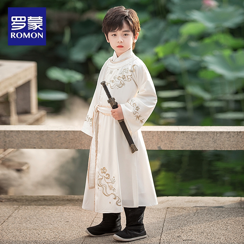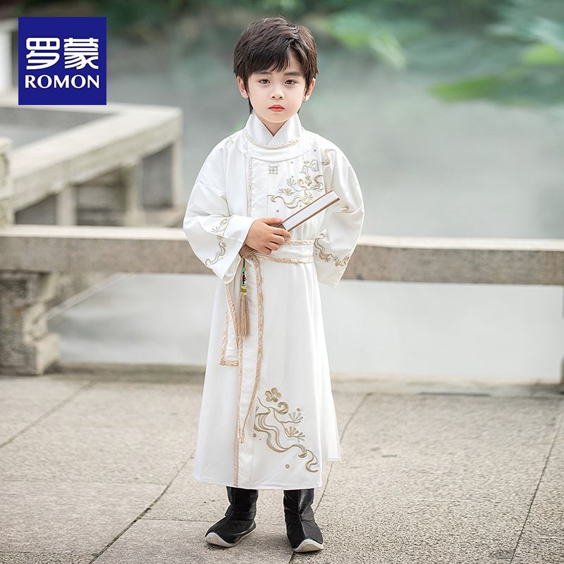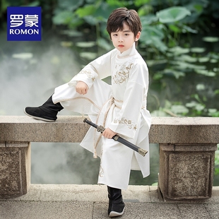 罗蒙男童汉服秋季 古风男孩超仙李白演出服小少爷帅气国风刺绣唐装