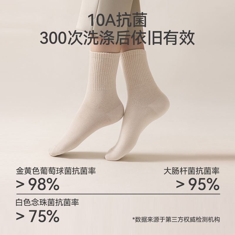 通用 三枪袜子女中筒袜10A抗菌弹力棉袜防滑透气防臭袜四季 5双