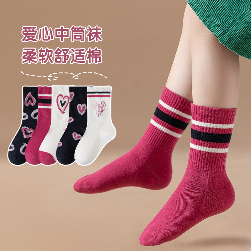 中筒袜绍兴长筒袜女宝 2023新款 南极人儿童袜子女童秋季 棉面秋款