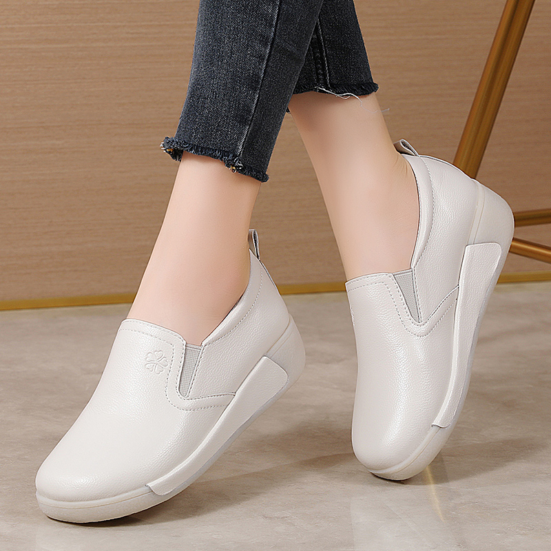 女软底中年舒适妈妈单鞋 2025春秋中跟复古松糕底厚底护士鞋 乐福鞋