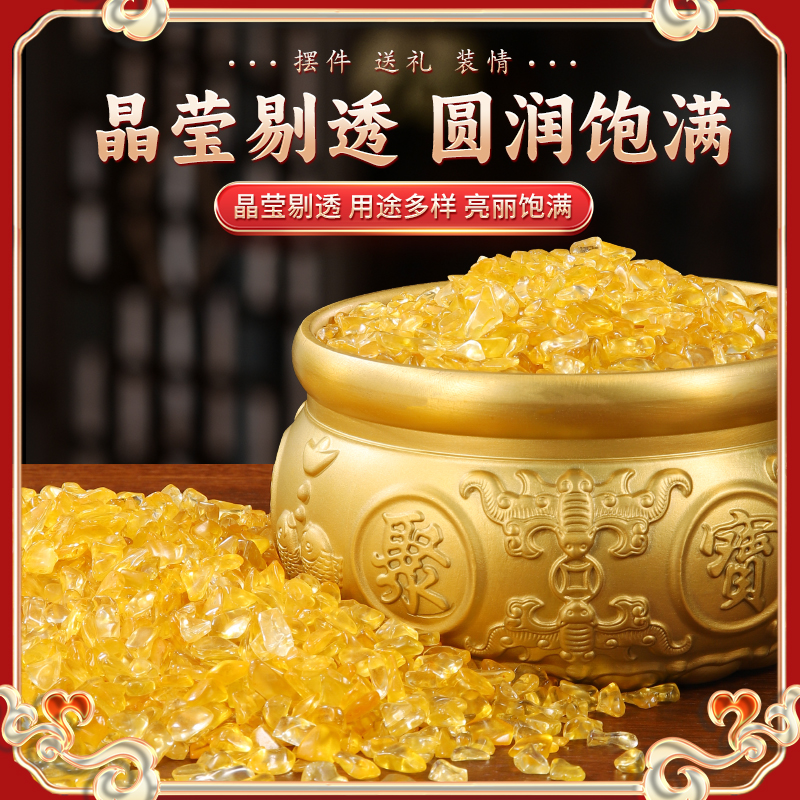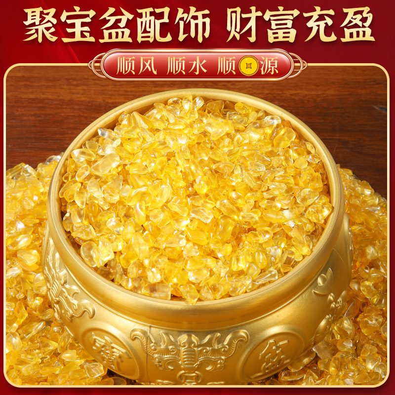 饰品 宝摆件配件七彩石装 黄水晶碎石水晶元 宝聚宝盆香炉黄碎石金元