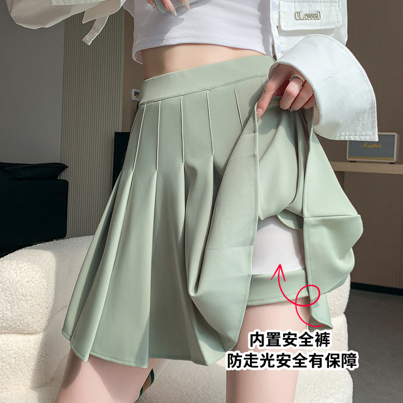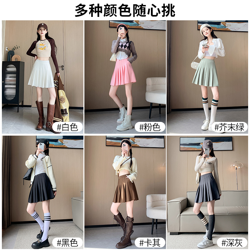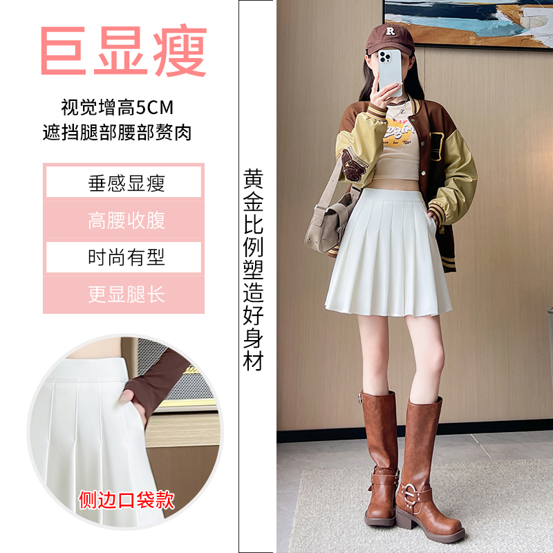 灰色百褶裙女半身裙口袋短裙春秋夏季 高个子高腰显瘦弹力腰a字裙