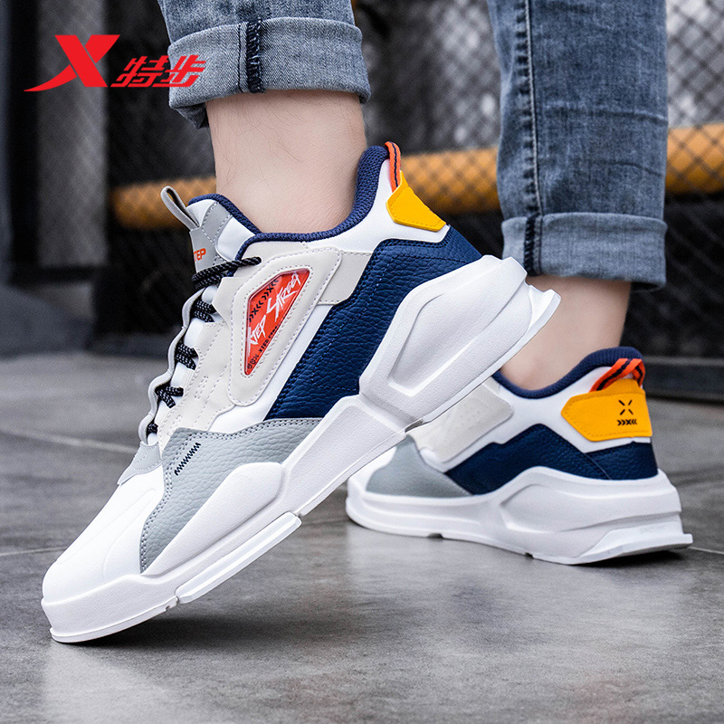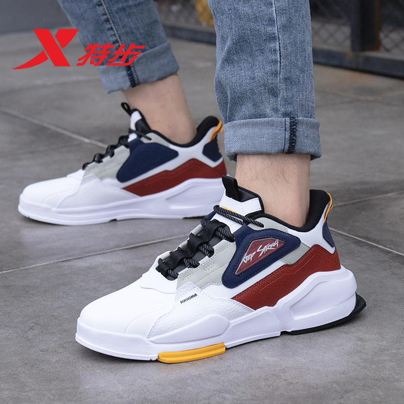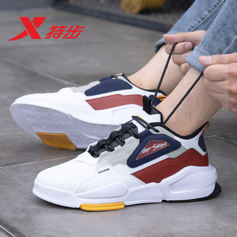子官方旗舰皮面复古运动鞋 特步男鞋 潮流轻便休闲鞋 秋冬新款 男 板鞋