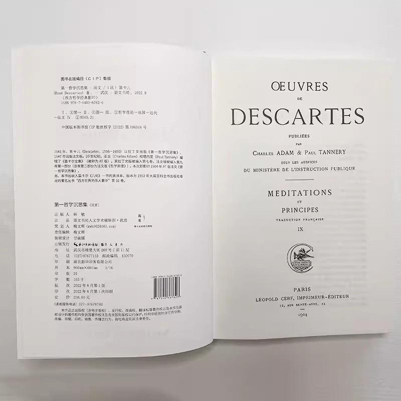 影印 笛卡儿 著 新书 崇文书局 法 西方哲学经典 法文 正版 第一哲学沉思集