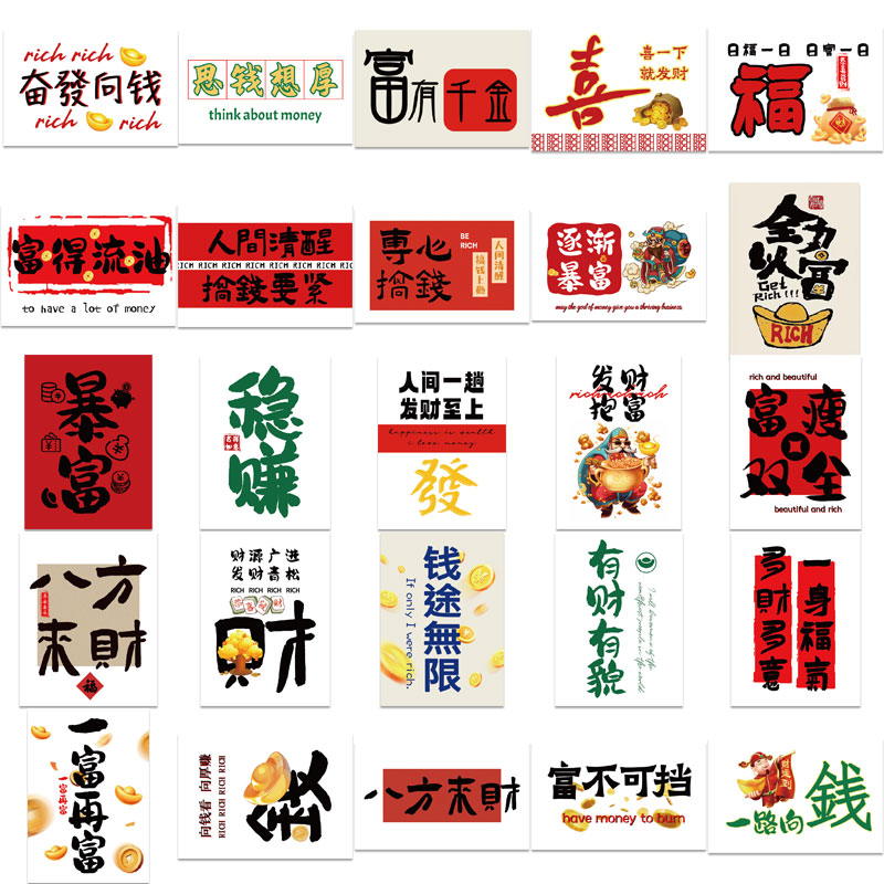 50张暴富有钱贴纸装 防水笔记本电脑手机壳行李箱贴画ipad 饰个性